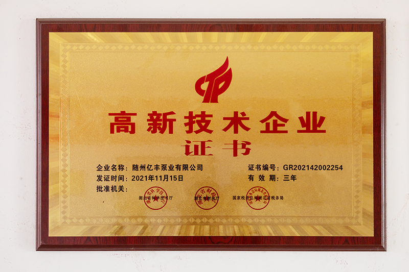 隨州億豐泵業(yè)有限公司位于隨州市曾都經(jīng)濟(jì)開發(fā)區(qū),建筑面積15000平方米,公司現(xiàn)有大學(xué)文憑以上的35人、技術(shù)人員25人(高級(jí)職稱5人、中級(jí)職稱以上27人)。公司自成立以來(lái)先后獲得高新技術(shù)企業(yè)、“專精特新”小巨人企業(yè)、隱形冠軍、著名商標(biāo)等一系列榮譽(yù)。